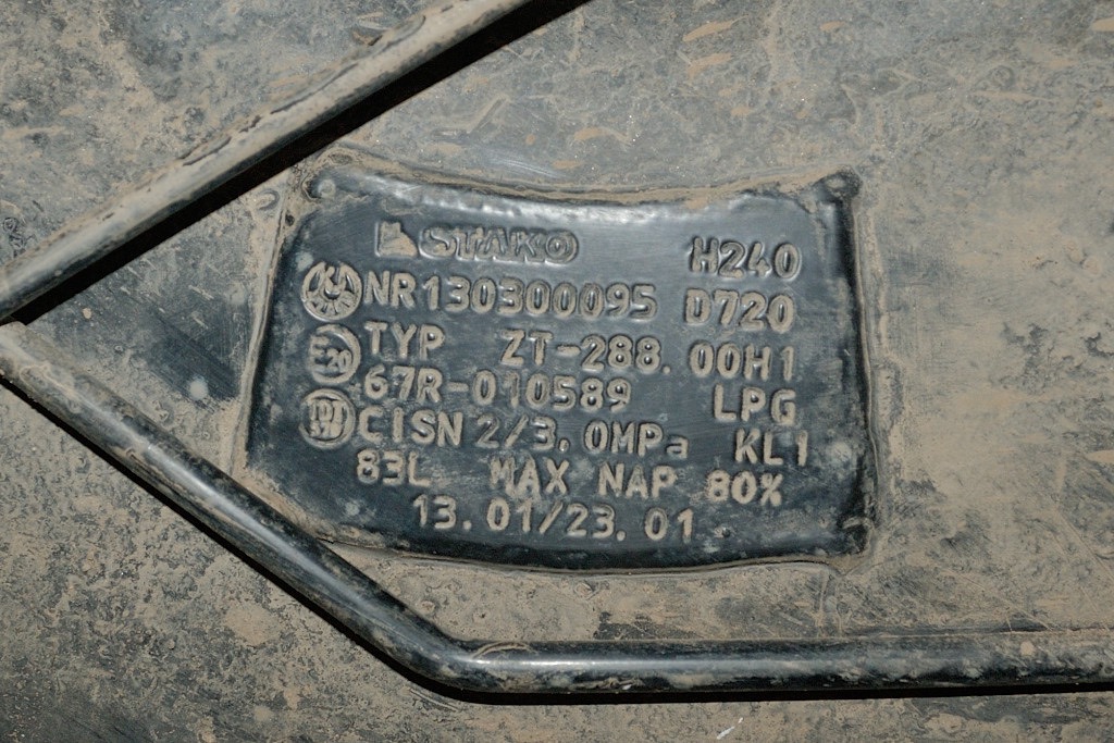 Z předloženého štítku určete, zda ke dni kontroly 27. ledna 2023 mohla být nádrž používána ve vozidle?